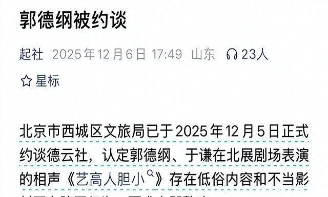 “约谈风波”刚起,郭德纲发文疑似8字回击,杨议评论越看越现实谁能想到,郭德纲讲了大半辈子的相声,这次居然是被自家“手艺”送上了热搜。12月7号,关于郭德纲“被约谈”的消息像拧开的水管一样一下子在网上炸开锅。